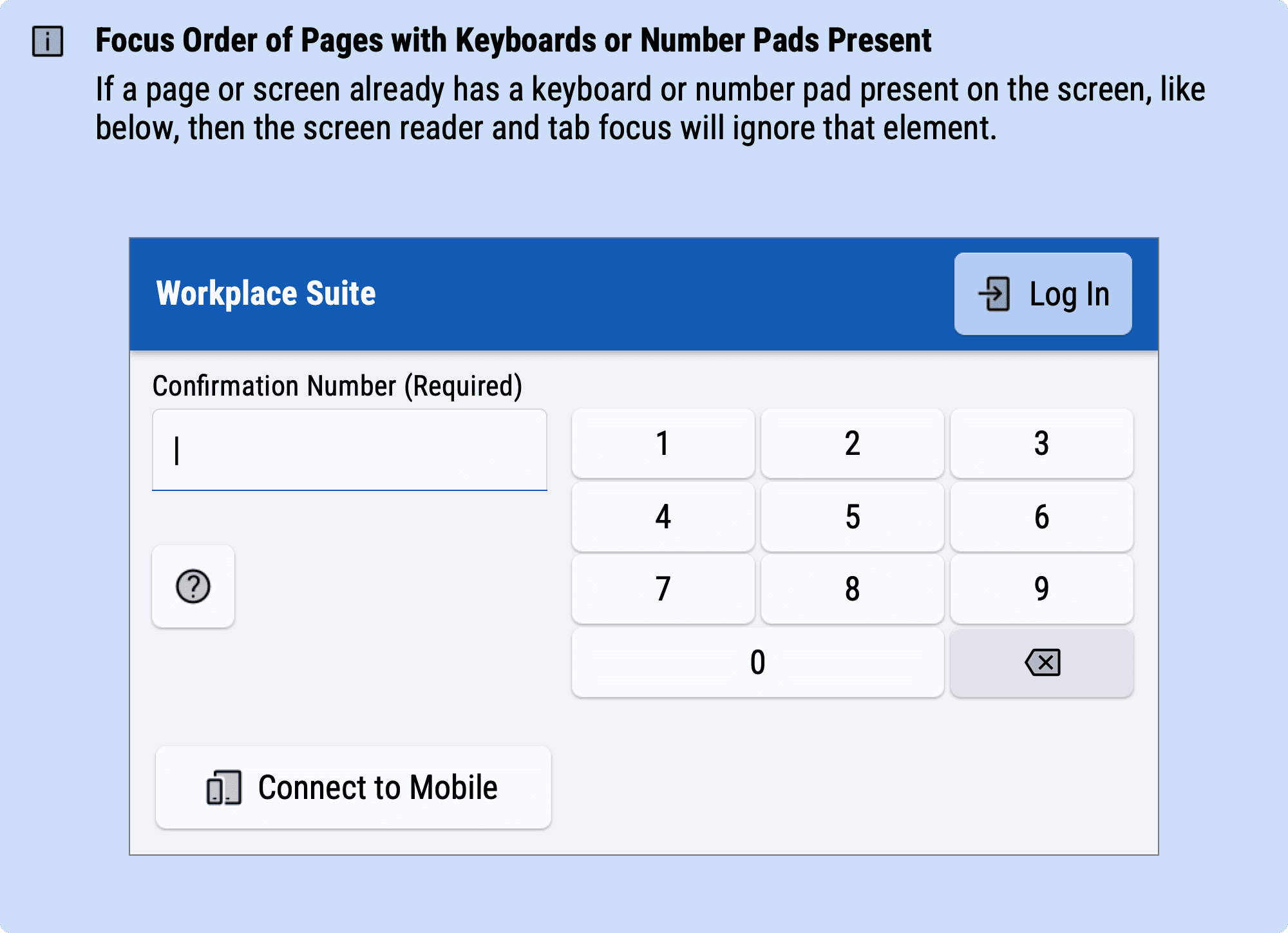 Full keyboard functionality for the employees and other users that require different ways of navigating an application.