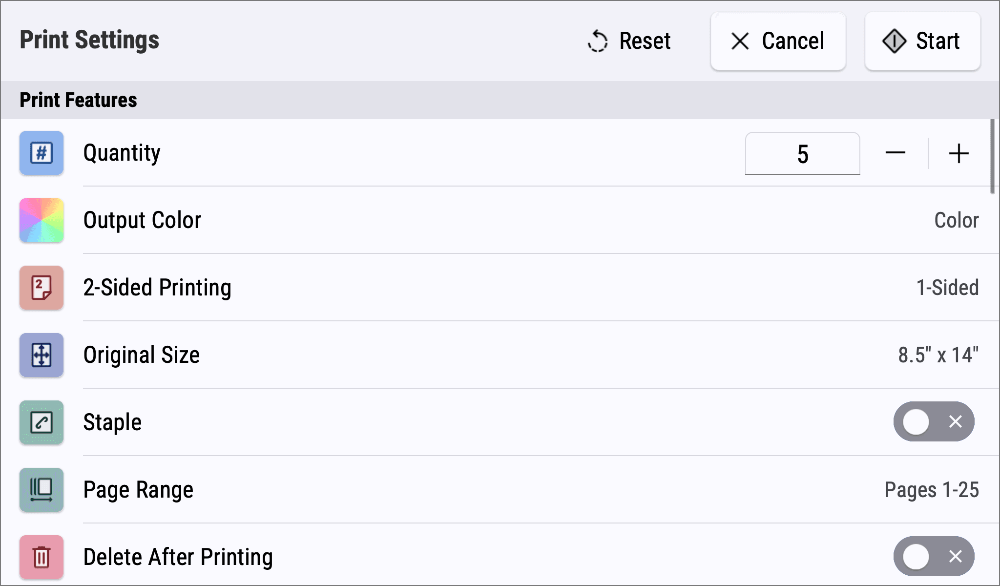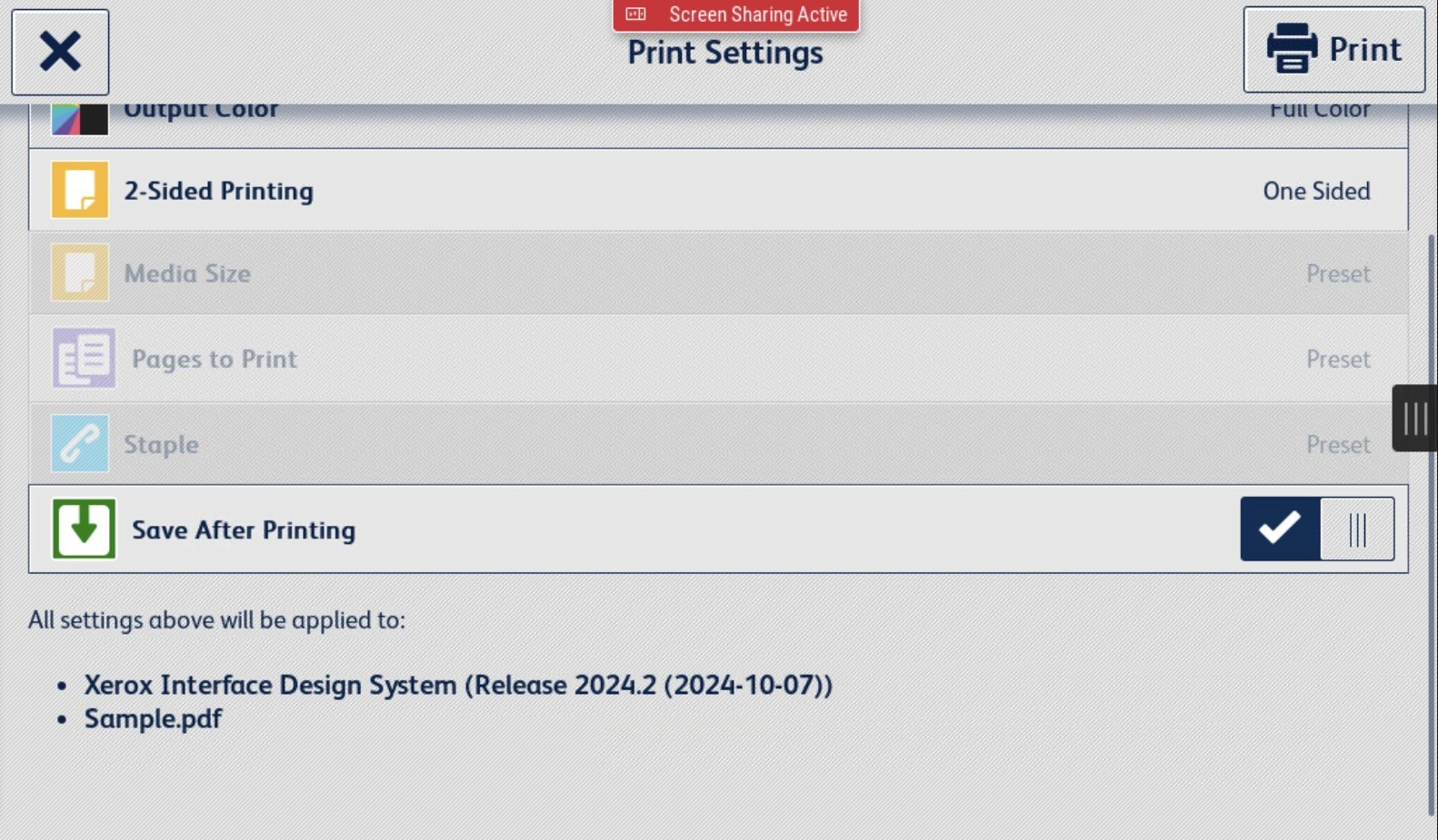 The list of features (settings) users can adjust was updated to better reflect partner applications and other Xerox-based software solutions. Therefore, this brought consistency and improved navigation as users knew what to expect when it came to changing settings.